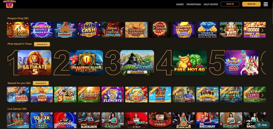 Grand Vault Casino is their second take after launching SpinsAmerica in December 2024, and judging by our first look, the team is looking to maximize AppGreat’s expertise in the AI department and use AI-driven analytics to track player preferences and surface the most popular games in your area.