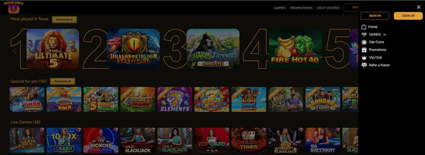 The site is currently in closed beta, so SweepsKings is looking at what’s available on the site now before Grand Vault officially launches later this year. To get a hands-on feel of what it will look like, try SpinsAmerica below.