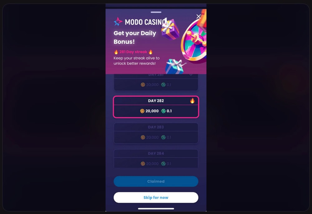 On the r/chumba subreddit, a user named Low-Data-41 – with a login streak of 282 days on Modo.us – posted the below screenshot, voicing disapproval: